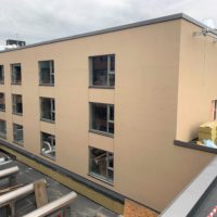 Wooden and steel framed outside walls, metal framed inside works, structures between new and old buildings, installation of windows