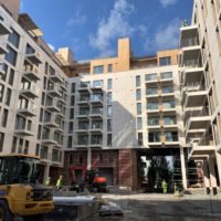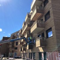 External walls, wooden framed walls, installation of gypsum board and wool works, oak ceilings with Spile (500 m²), installation of windows and balcony sliding doors, terrace works on 8th floor (700 m²), facade works with oak (1500 m²)
