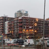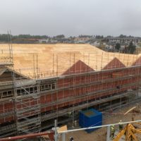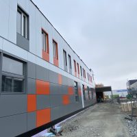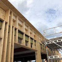 Construction of exterior and interior walls for the extra floor of the office building 3e