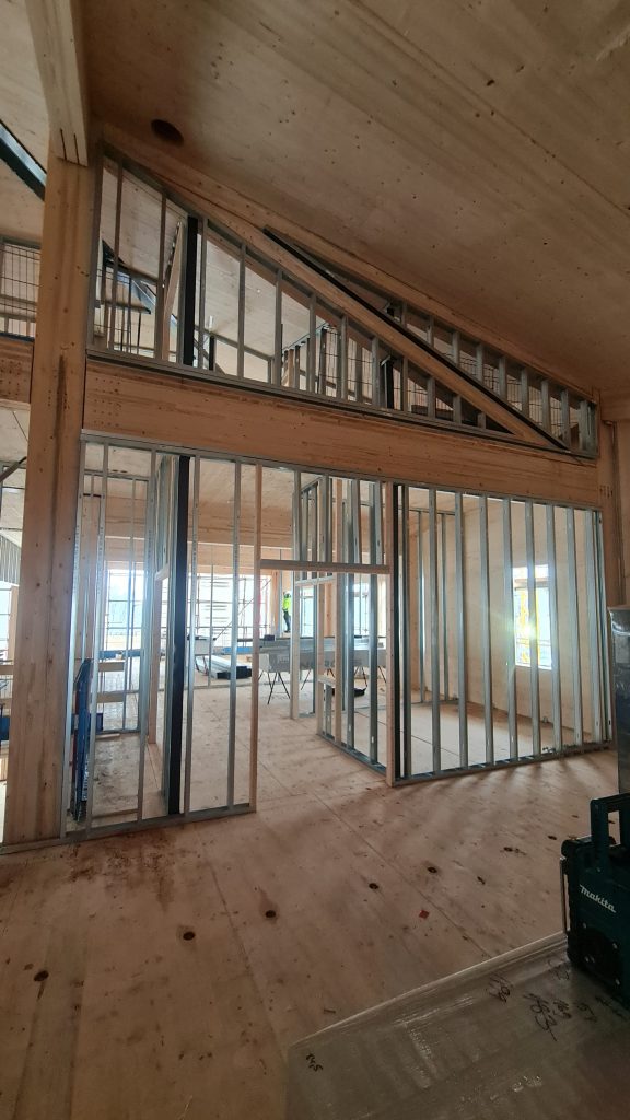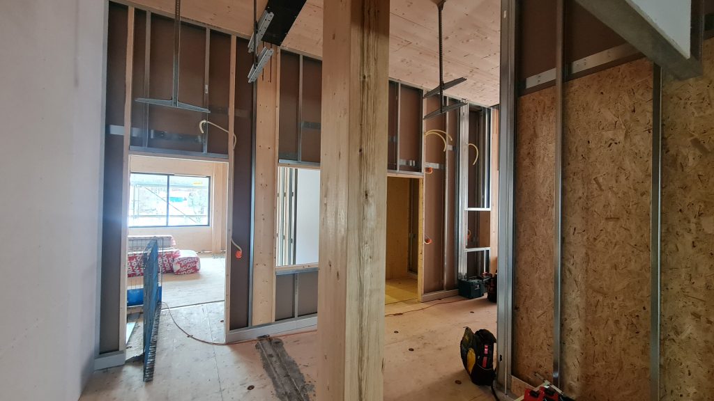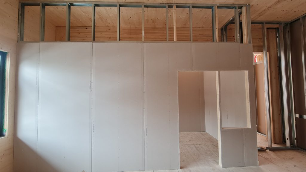 Installation of windows and doors, interior walls, ceilings