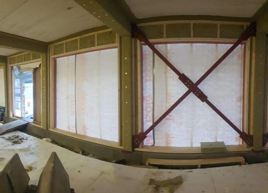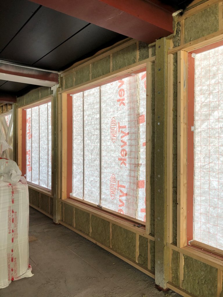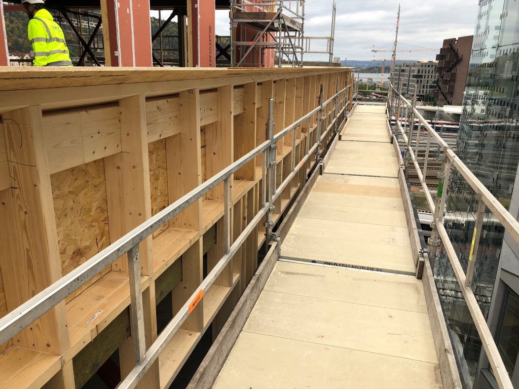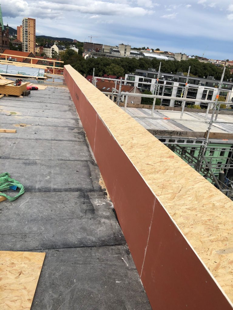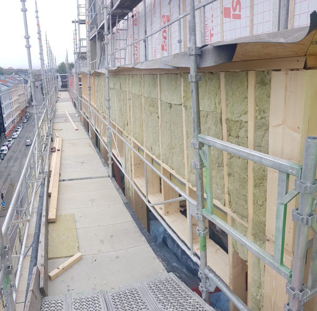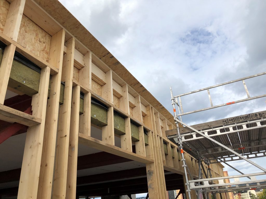 Construction of exterior and interior walls for the extra floor of the office building 3e